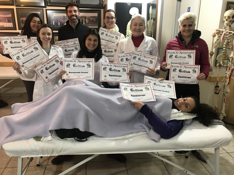 O curso de *Massoterapia Vespertino (à tarde)* com registro tem duração de 8 meses de estudo. As aulas são nas *terças e sextas*.