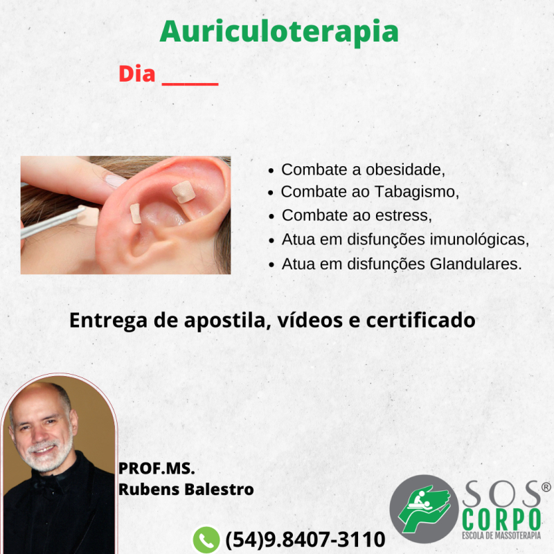 Aprenda Auriculoterapia e ajude pessoas a " emagrecer ", " parar de fumar ", "combater o estresse". Possibilita ao paciente "levar o tratamento para casa".
